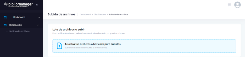 Para realizar la carga masiva, Bibliomanager dispone de una herramienta drag&drop que le permite al editor realizar la acción de arrastrar y soltar varios archivos a la vez.